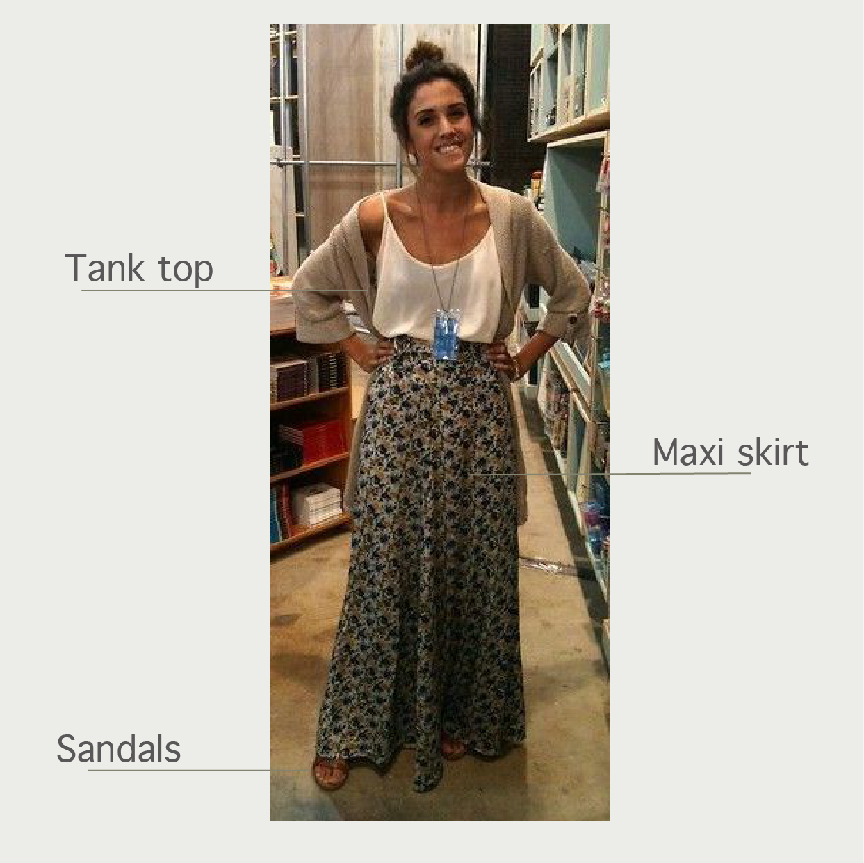 雪紡細肩帶背心搭上圖騰長裙創造十足的垂墜感,涼快又舒適。運用素色與特殊圖騰的搭配,讓整體穿搭有亮點又不失焦。