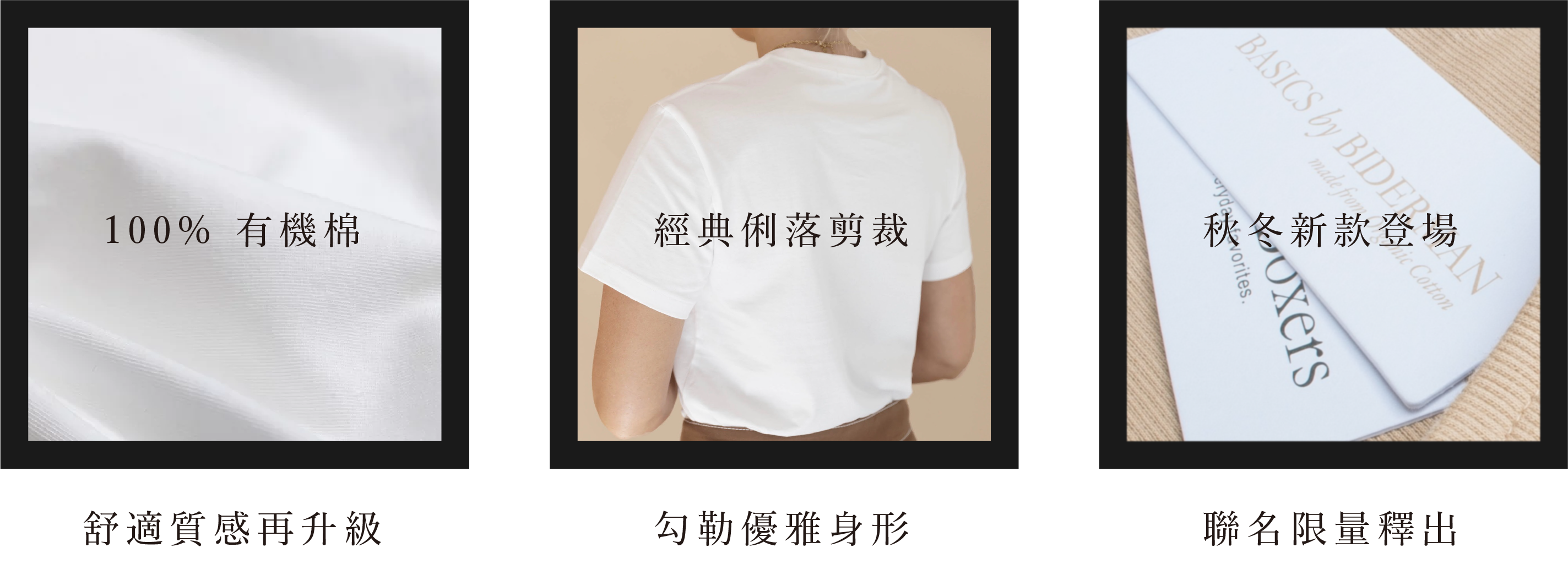 此次全新女裝系列均由100%有機棉製成,並提供三種顏色選擇:白色、⿊色和米色,不管是外穿、層次穿搭,亦或是黑、白、米色簡約穿搭,Bread & Boxers 都會是妳的日常穿著最佳提案。