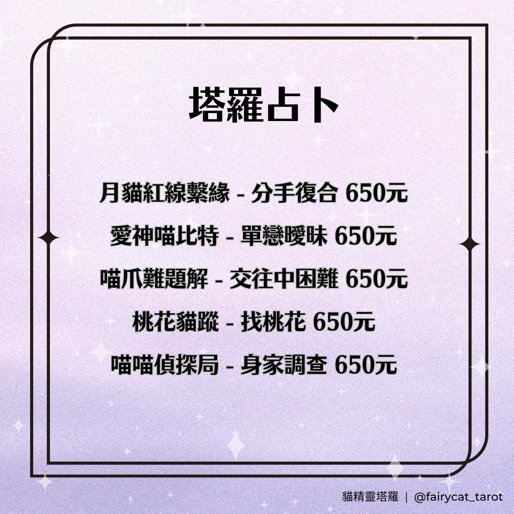 🐈塔羅服務是由貓精靈直接回覆~這邊是下單付款的平台,如果有任何疑問請直接私訊貓精靈的LINE或是IG 🔮🐈
