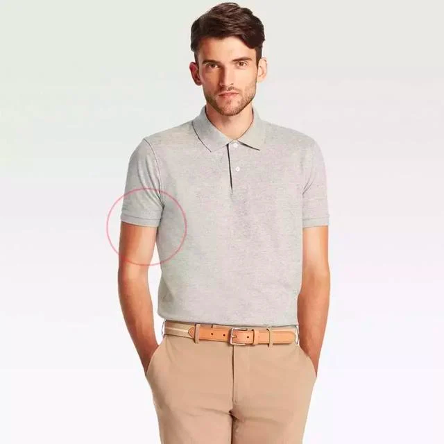 最合適的袖長位於二頭肌中間,袖圍包住手臂,衣長在褲子門襟一半位置為佳選擇!換句話說,剛剛蓋過皮帶即可。如果身材較胖,建議選擇稍微寬鬆一點的深色Polo衫;如果身材偏瘦,建議選擇寬鬆的淺色款,因為太貼合身體的Polo衫,對身材偏瘦的人來說會顯得衣領很大,若穿深色則加重了瘦弱感。