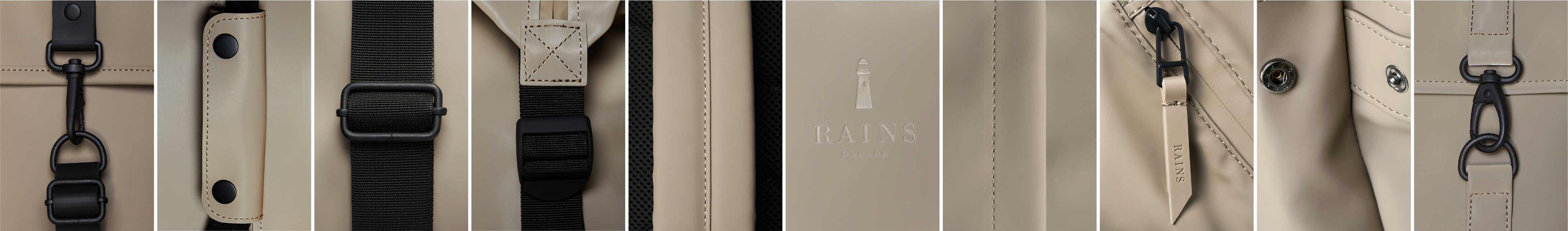 來自丹麥的 RAINS ,是個於2012年創立的年輕品牌。以品牌發源地的地理環境及北歐簡約生活為設計靈感,將產品設計理念專注於精進雨天外出的使用經驗,設計出簡約美感兼具防水實用機能概念之雨衣、包款及相關配件。