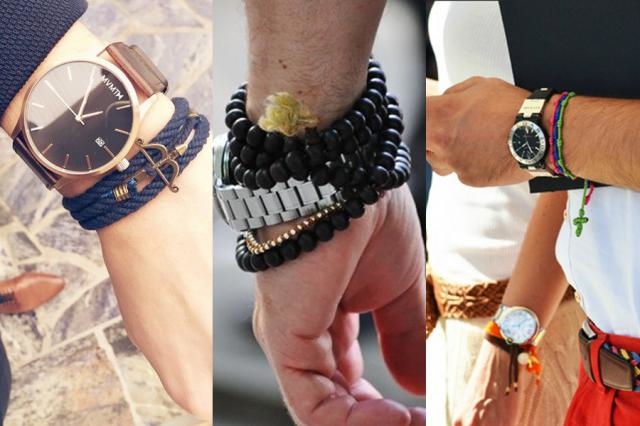 如果不喜歡脖子負重感的人,建議可以將飾品重點放在兩手空空的手上。有時候只有配戴一個手錶,感覺穿搭有點單調時,不妨試試多種不同材質或風格的手環,藉由大膽又衝突的搭配,反而可營造出獨特的不羈特色。
