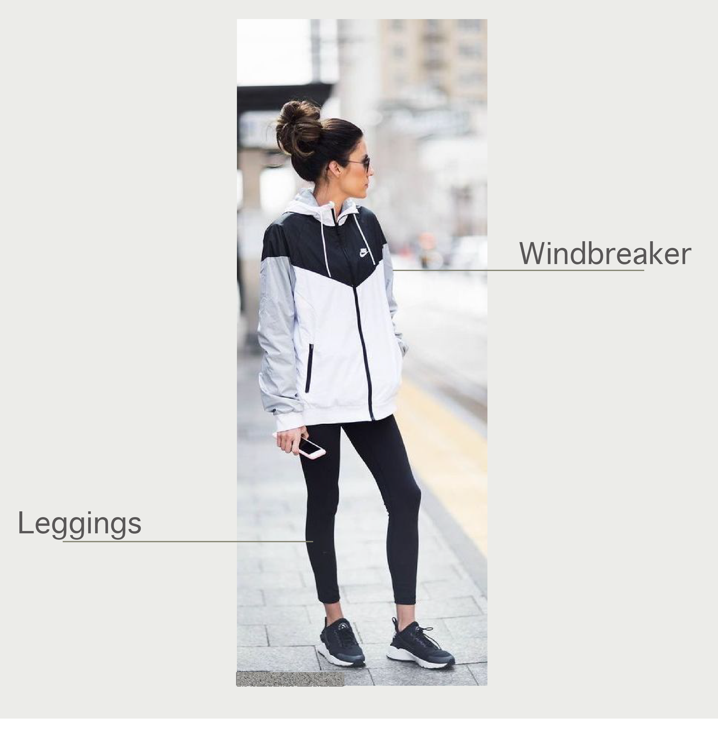 怎麼動都舒適的內搭褲配上防風外套,無論是打球、慢跑、做瑜伽都合適。運動完加上一副帥氣的墨鏡,時尚滿點